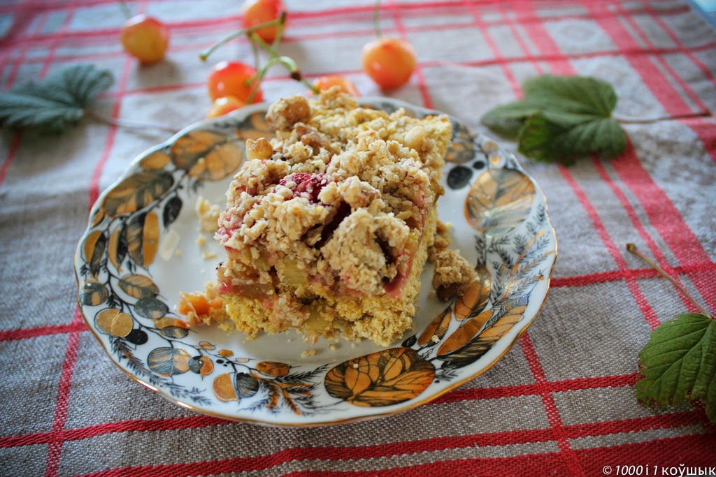 разатрэм рукамі аўсянку, масла, раздробленыя гарэхі і цукар. На падпечаную